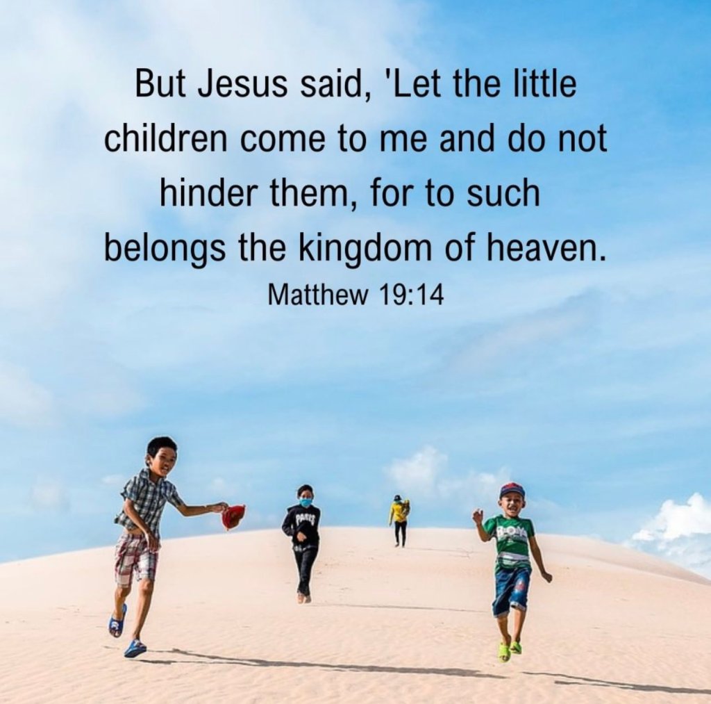 Matt. 19:14 Jesus said, “Let the little children come to me and do not hinder them, for to such belongs the kingdom of heaven.”